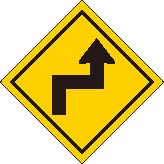 右(左)方背向屈折あり 右(左)方背向屈折あり この標識が示されている場合には、次のことを示 しています。この先に右(左)方背向屈折があり注意することを示しています。 2025.11.08 交通標識右(左)方背向屈折あり警戒標識