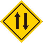 二方向交通 二方向交通 この標識が示されている場合には、次のことを示しています。この先の道路は交通方法が二方向になるので注意することを示しています。 2025.11.10 二方向交通交通標識交通標識|黄色警戒標識