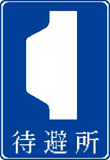 この標識は待避所であることを示します。狭隘道路で車両同士が行き違い(離合)を行うための空間、または長い急坂に設置される構造物である。
