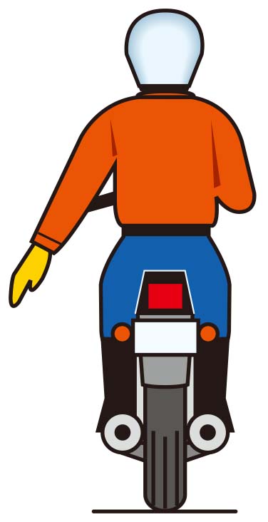 車両の運転者(軽車両を除く)は左折、右折、転回、徐行、停止、後退のほか、同一方向に進行しながら進路を変えるときは、手、方向指示器または灯火により定められた時期や方法により合図を出し、その行為が終わるまで合図を継続する。